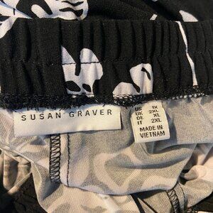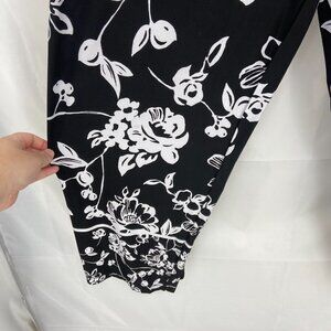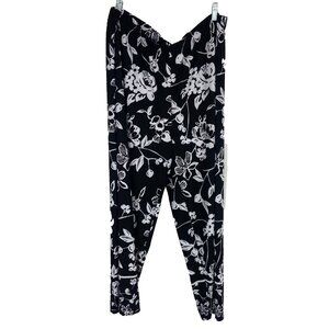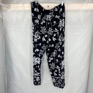 Susan Graver Women 1X Floral Pull On Pant Cropped Black Tapered Ankle Vacation