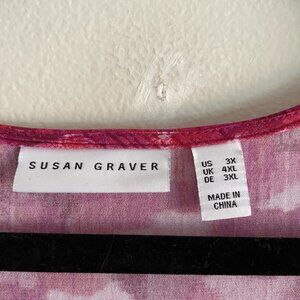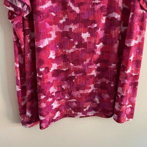 Susan Graver Women 3X Pink Camouflage Liquid Knit Square Neck Short Sleeve Top.