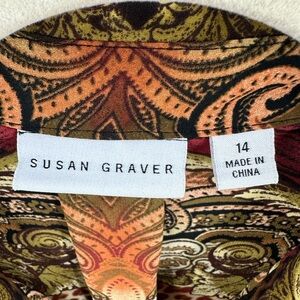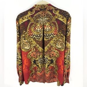 Susan Graver Women Button Up Blouse Top Size 14 Paisley Animal Print Long Sleeve