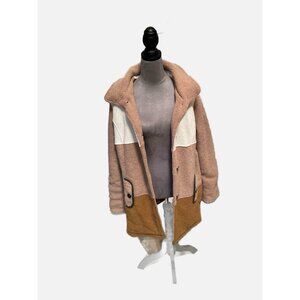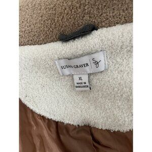 Susan Graver Women Multi Color Button Front Faux Leather Hoodie Jacket Size Xl.
