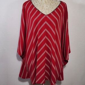 Susan Graver Women Oversized Flare Sleeve Red Striped V-Neck Blouse SZ XL Casual