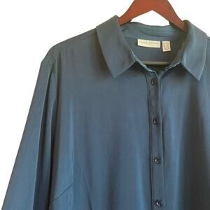 Susan Graver Women Tunic Top 1X Blue Long Line Oversized Professional Career
