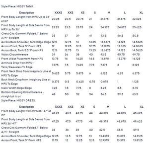 Tank Length: missy length 20-1/2" to 22-5/8"