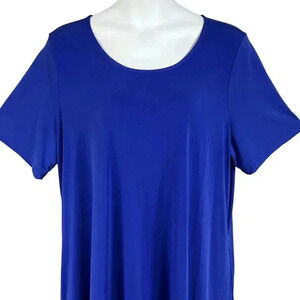 Susan Graver Womens Size 3X Midi Blue Liquid Knit Jersey Shift Dress Vacation Hiking Knee Length Tunic Dress