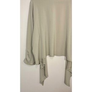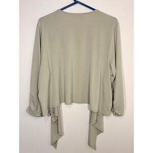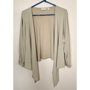 Susan Graver Womens Beige Open Front Cardigan Wrap 2X Liquid Knit Ruched Sleeves