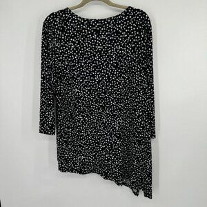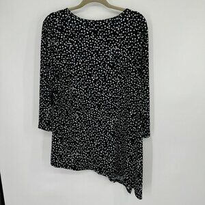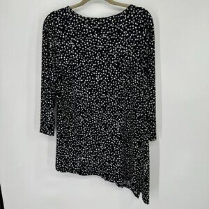 Susan Graver Womens Black Polka Dot Asymmetrical Hem Tunic Top knit Size large
