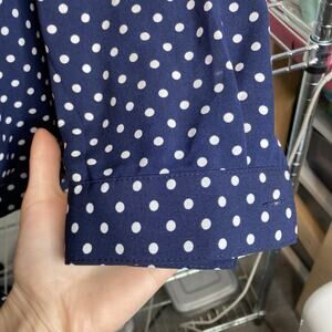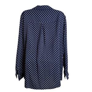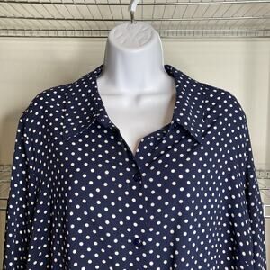 Susan Graver Women's Blue White Polka Dot Tie Hem Blouse Size 18W Coastal Preppy
