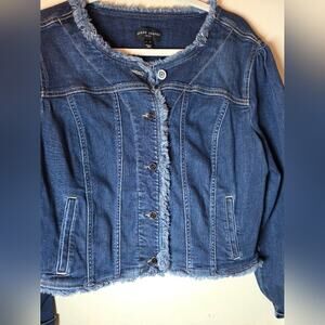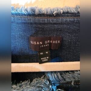 Susan Graver Womens Dark Denim Blue Jean Jacket Size XL Raw Frayed Edge