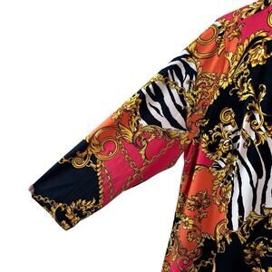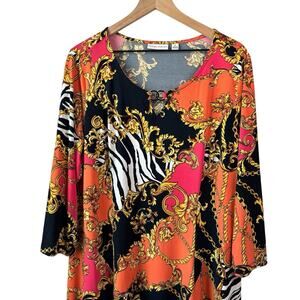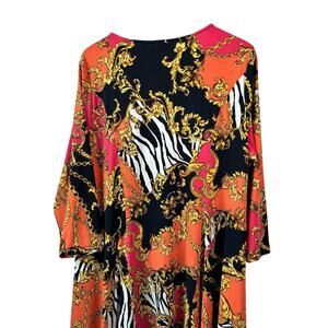 Susan Graver Womens Dress XL Orange Multi Color Liquid Knit Zebra Chain Stretchy