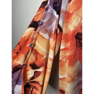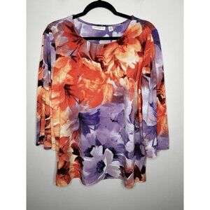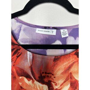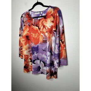 Susan Graver Womens Floral 3/4 Sleeve Round Neck Tunic Top Gems Knit Size Medium