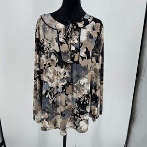 Susan Graver Womens Floral Liquid Knit Tunic Lace Up Size 2X Stretch Loose Fit