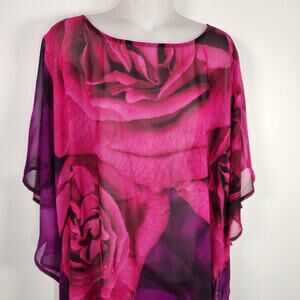 Susan Graver Womens Floral Printed Sheer Chiffon Scarf Top Purple Rose Medium