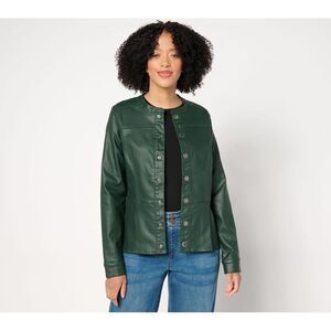 Susan Graver Women's Jacket Sz L Coated Denim Peplum Green A670193