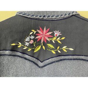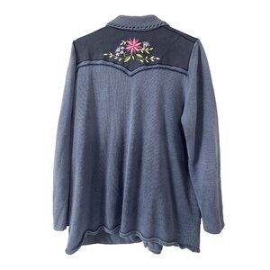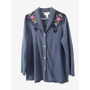 Susan Graver Womens L Dusty Blue Beaded Embroidered Floral Cardigan Grannycore