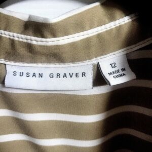 Susan Graver Womens Lagenlook Striped Button-Up Shirt Size 12