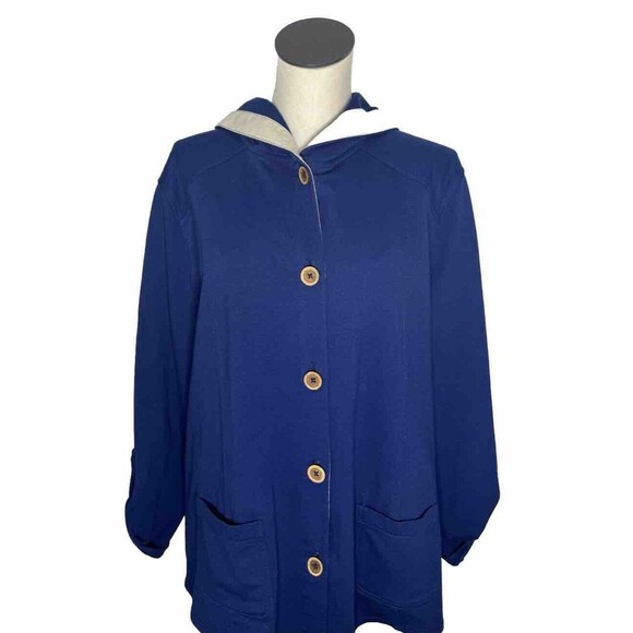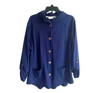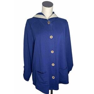 Susan Graver Women’s Large Blue Hooded Button Jacket
