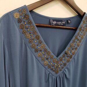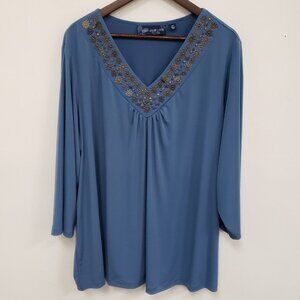 Susan Graver Womens Liquid Knit Beaded Top Size 2X Embellished Boho Mature Artsy