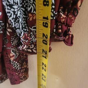 Susan Graver Womens Liquid Knit Top V-Neck Floral Blouse Size 1X Burgandy/Blue