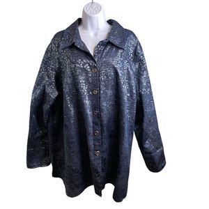 Susan Graver Women's Metallic Floral Shirt Jacket Est. Size 2X Statement Boho