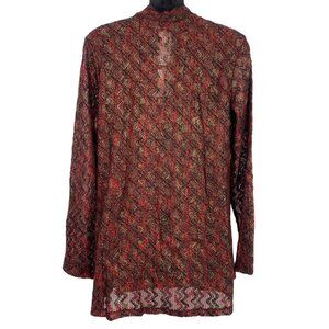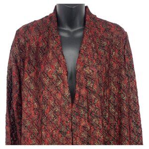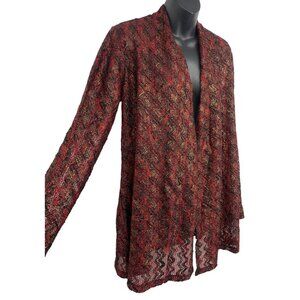 Susan Graver Womens Open Front Cardigan Jacket Medium Zigzag Red Black NWT New