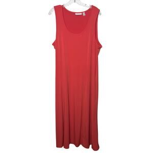 Susan Graver Women’s Orange Sleeveless Maxi Dress Size 1X Plus Stretch Tank Long