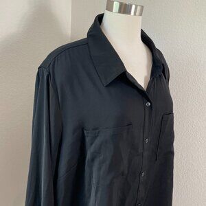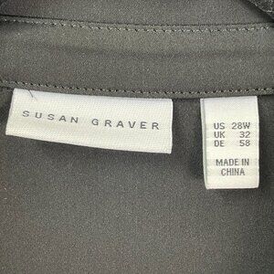 Susan Graver Womens Plus 28W Black Blutton Up Tunic Top Roll Tab Sleeve Shirt