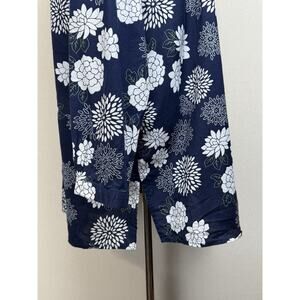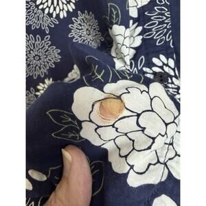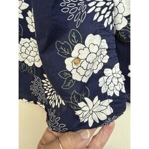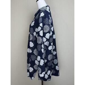Susan Graver Women’s Plus Sz 2X Cotton Shirt Button Down Floral Print Navy White