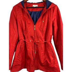Susan Graver Womens Red Hooded Jacket With Drawstring Waist XS