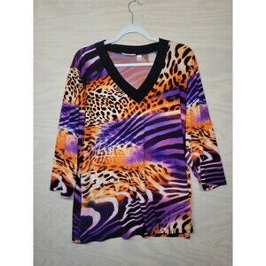 Susan Graver Women's SZ 2XL Blouse Shirt 3/4 Sleeve Zebra Leopard Halloween Core