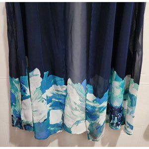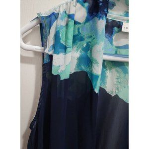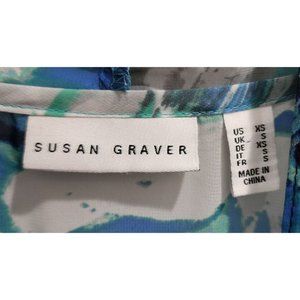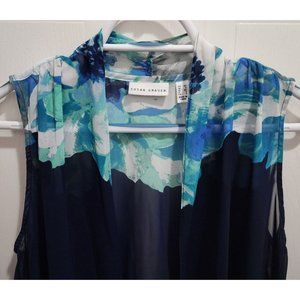 Susan Graver Women's Sleeveless Open Front Lightweight Top Sheer Blue Floral XS