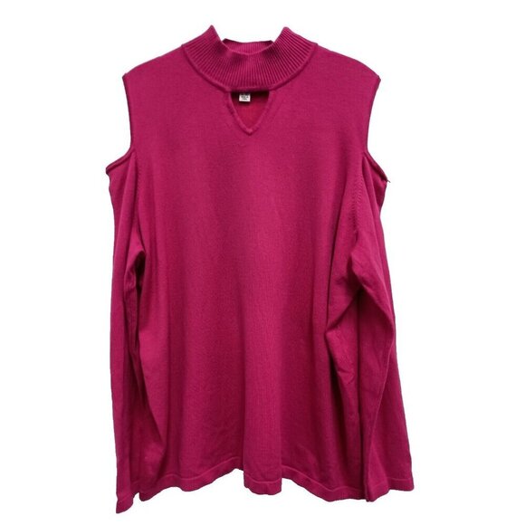 Susan Graver Womens Sweater Size 1X Hot Pink Cold Shoulder Mock Neck Keyhole