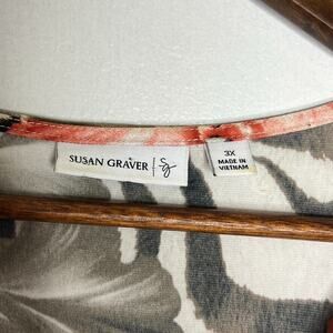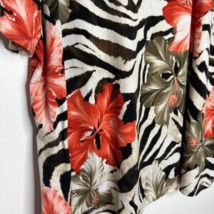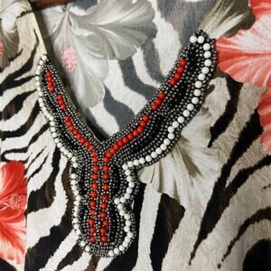 Susan Graver Women's Tunic Top 3X Zebra Floral Beaded Neckline Short Sleeve