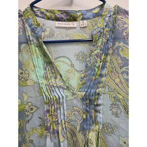 Susan Graver Womens Tunic Top Size Medium Blue Green Paisley Chiffon Blouse