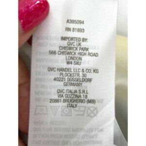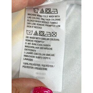 Machine wash cold, with like colors, non chlorine bleach, tumble dry low, remove promptly, low iron, 100% polyester. Lovingly preowned. Excellent Condition.