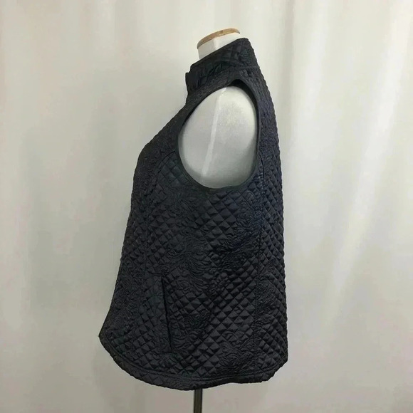 Susan Graver Women’s Vest Medium Gray Front Zip Quilted Pockets