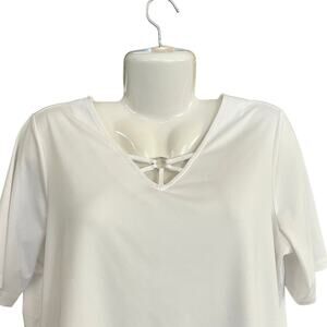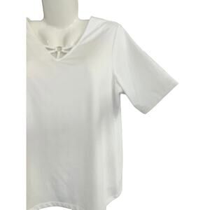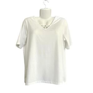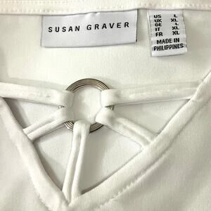 Susan Graver Women's White Butterknit Short Sleeve Top with Ring Accent | Size L