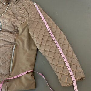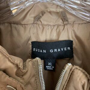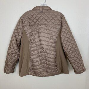 Susan Graver Womens XL Quilted Jacket Ponte Side Panels Zip Pockets Tan Puffer