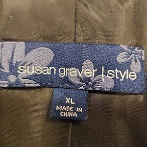 Dress up in style with this Susan Graver Crinkle Iridescent Patchwork Jacket in a beautiful purple color. This jacket is made of high-quality acetate material and features a floral pattern with a button closure. The jacket is perfect for any occasion, whether it's for a party, formal event, or business meeting.