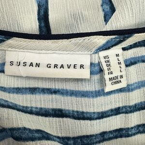 Susan Graver Women's M Lightweight Poncho Blue Multi Stripe Boho Beach Coastal