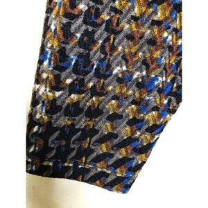 Susan Graver XL/P Plaid Houndstooth Open Cardigan Duster Black Blue Gold Knit