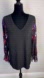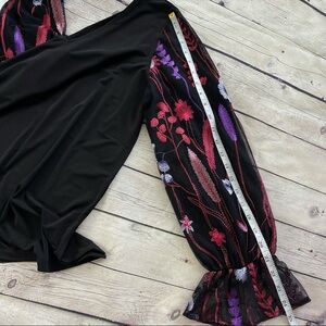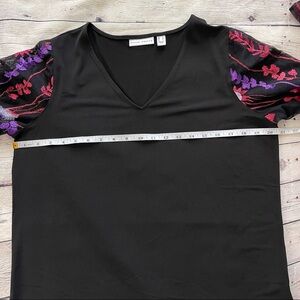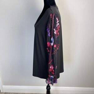 Susan Graver black sheer embroidered sleeve v-neck side slit blouse top size M