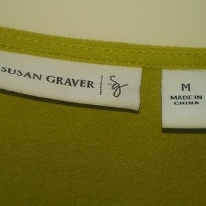 Description: Green tunic blouse. Sleeves can be rolled at the cuff or can be 3/4 sleeve. Splits on both sides of hem. Gold beaded embellishments along V-neck.✝️