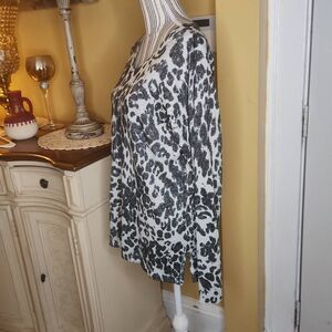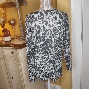 Susan Graver metallic gray animal print v neck sweater women's size M