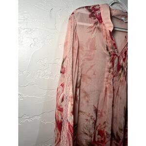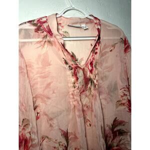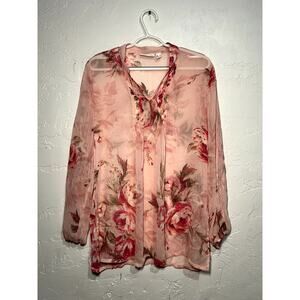 Susan Graver pink sheer chiffon floral tunic blouse womens small old money