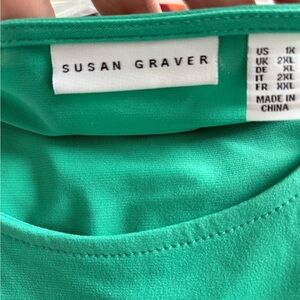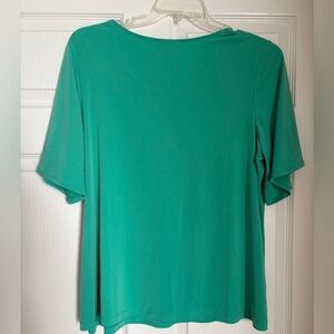 Beautiful emerald green top with short bell-shaped sleeves by Susan Graver. Size 1X. Excellent condition.