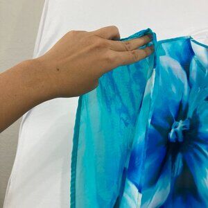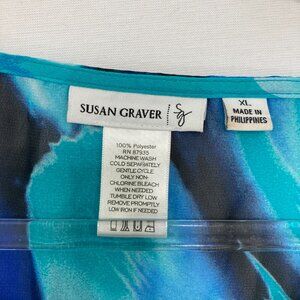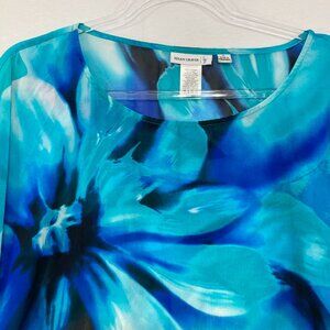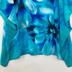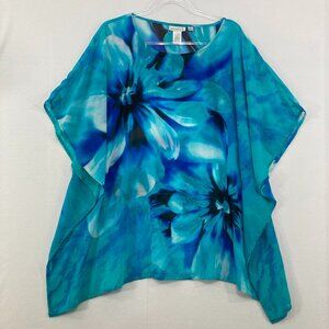 Susan Graver size XL Blue Navy Floral Soft Flowy Poncho Top Vacation Resortwear