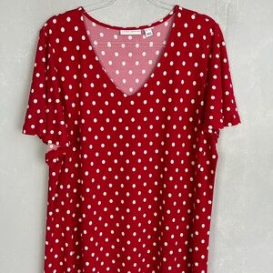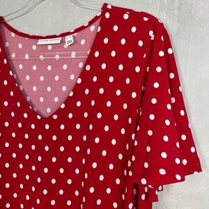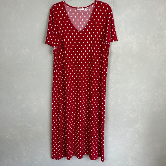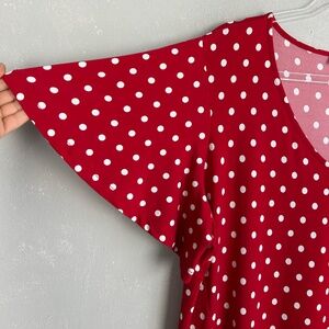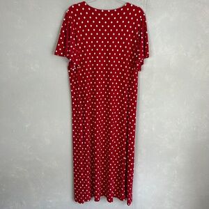 Susan Graver size XL midi dress liquid knit flutter sleeve red polka dot v-neck