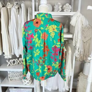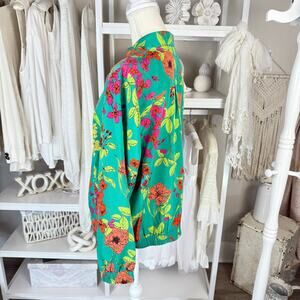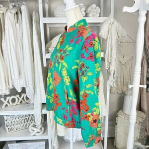 Susan Graver size large floral full zip light weight jacket, coastal, #3976