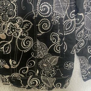 Susan Graver style embroidered linen blend blazer jacket black button FLAWED L