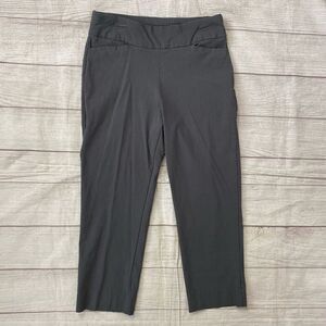 Susan Graver women 4 pull on elastic high waist grey Capri pant w/front pockets